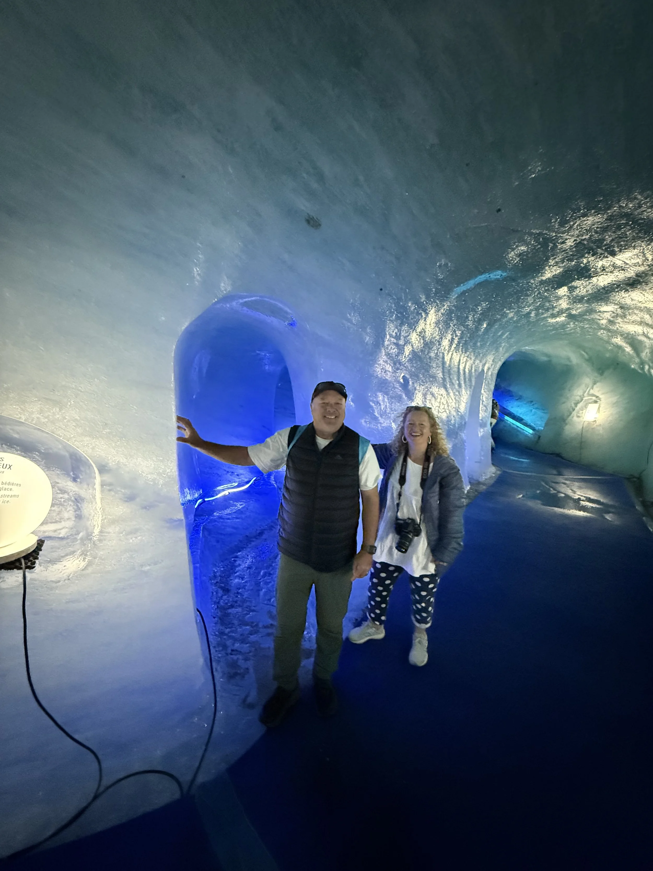 There was an English tour guide giving an awesome rundown of all the mountain’s names and I hovered at the back so I could identify them all too. You could see all the way to Italy and Switzerland from up there in that one spot. We could even see the Matterhorn peeping up on the horizon. It was CRAZY!! The mountains were magical and It felt like we were on top of the world. We were twice as high now as we had been on the cog train and I’d thought that was high! There was a glass box you could stand in, way up at the top of the ‘lighthouse’ but the queue was a mile long and I don’t think I would have been brave enough for that. Ross was keen but we didn’t want to be stuck in a queue when there was so much to explore.