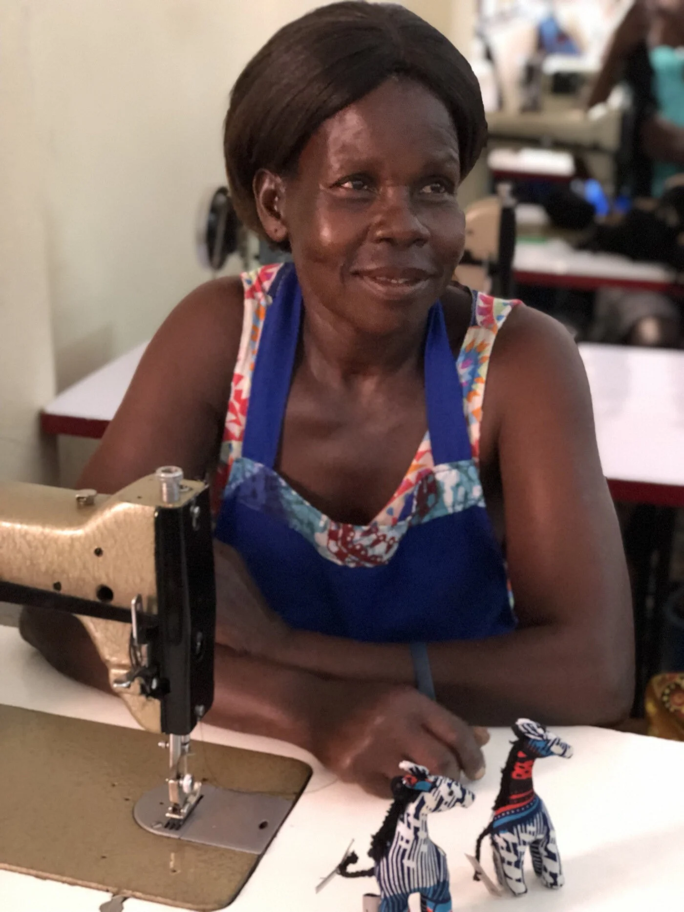 Our team was ushered into a room full-to-the-brim with women sitting at sewing machines. Their welcome to us was as enthusiastic as it was unique and, as they cupped their hands over their mouths, on-and-off, American Indian style, emitting the loudest and most raucous cheers, we were humbled. It was a cacophony like none we’d heard, with thunderous clapping, foot stomping and shrill hollering all in honour of our arrival. What a reception! Next, we were treated to some incredible singing, accompanied by two girls on a drum and more rhythmic clapping. Though we may not have understood the words (most of the girls spoke only in their African dialect) we were swept up in the music and joy of it all just the same. It’s an experience I’ll never forget.
