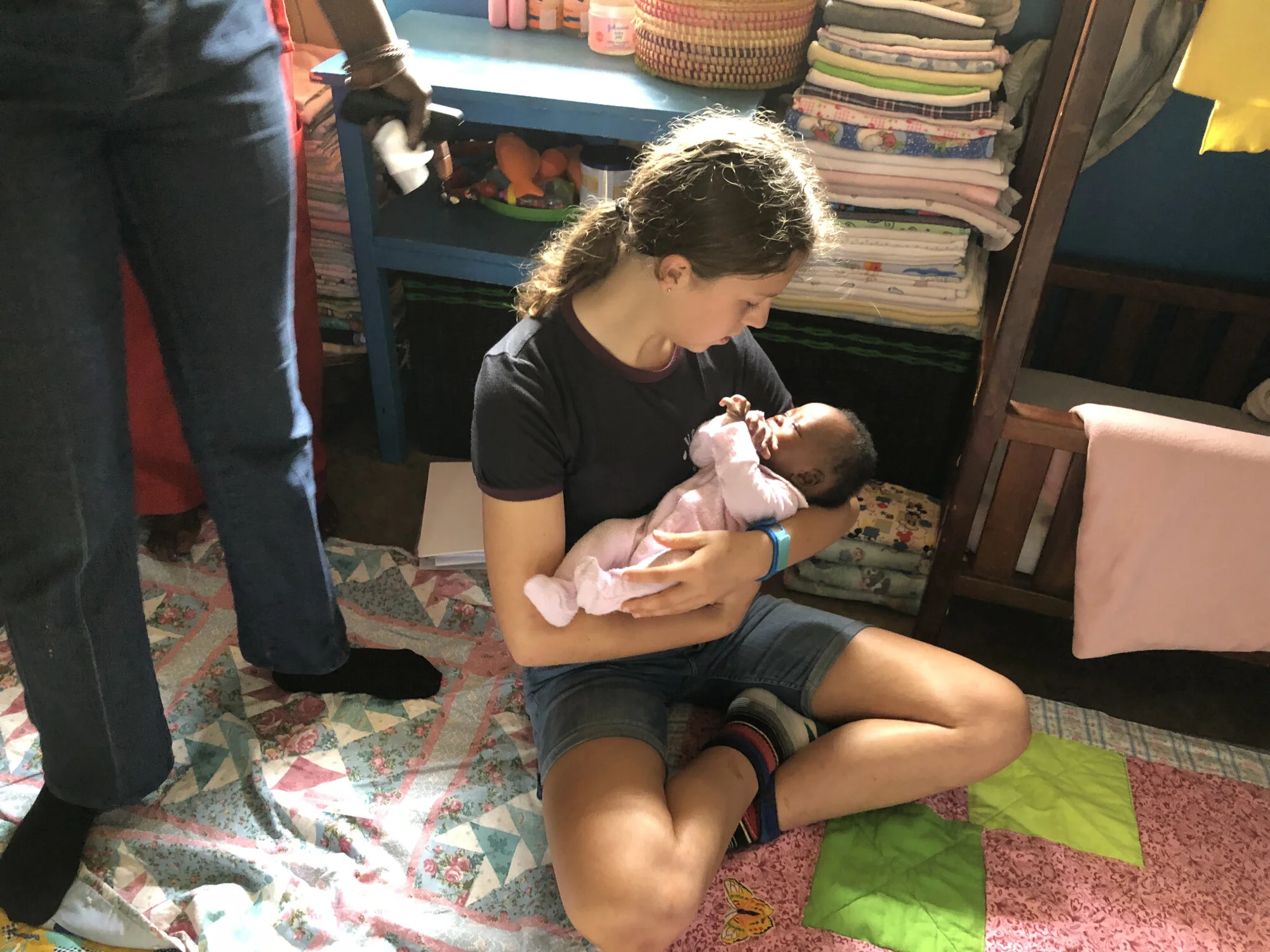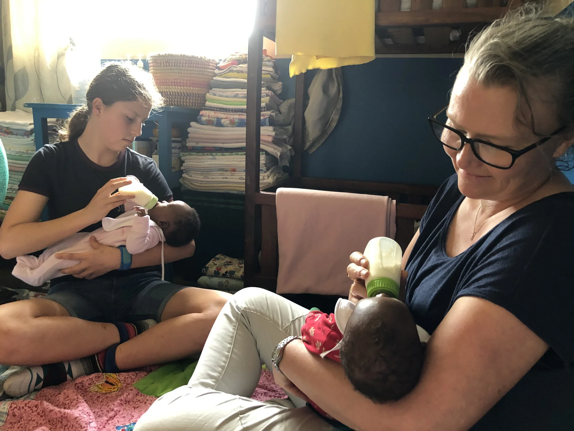 This afternoon we had the choice of going to the building site to start work on the greenhouse or to visit Baby Watoto in Gulu. Our family divided along gender lines, Ross & the boys going to build and the girls and I spending the afternoon with the orphaned babies. We had an absolute ball and got to cuddle and feed babies from 6 weeks old! They were unbelievably cute. Their huge brown eyes with eyelashes for days and their skin so dark and flawless. We just wanted to take them home! The home at Gulu houses around 80 babies so the task of looking after them is mammoth. Preparing bottles, changing nappies, bathing and dressing, all done by the loving carers like a well-oiled machine. We arrived during afternoon nap time to a peaceful, calm environment but the tone of the place quickly changed once the little tackers were up and about. They were everywhere – crawling, bouncing, playing. It was just so much fun. We all bonded with these gorgeous little people and I can’t wait to see them tomorrow.